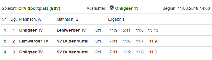 Spielort: OTV Sportplatz (ESV) Ausrichter: Ohligser TV Beginn: 11.08.2018 14:00